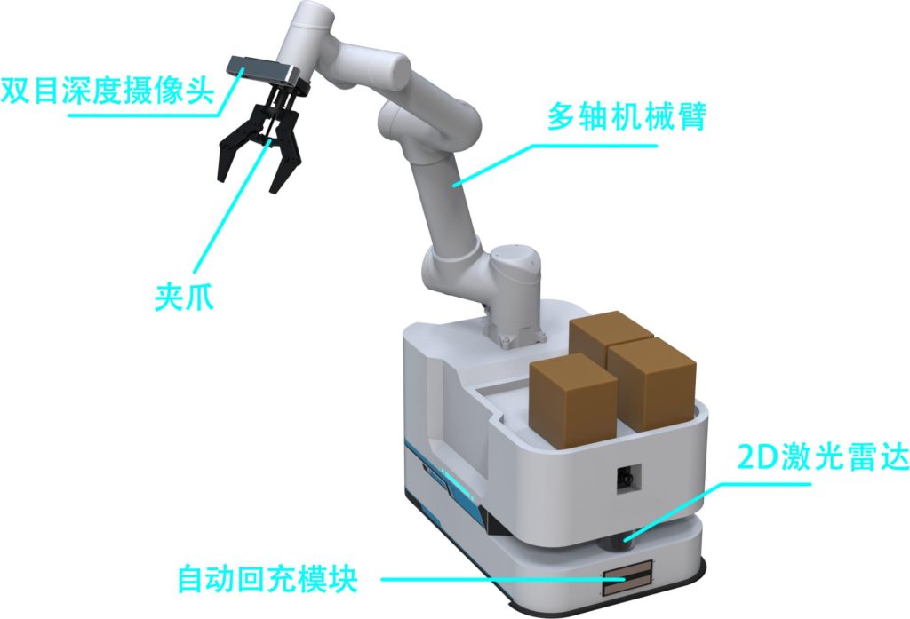 智能协作移动机器人可通过感知系统感知道路环境,自动规划行车路线并控制车辆到达预定目标。硬件包括 激光雷达、毫米波雷达、超声波雷达、IMU 传感器、RTK 传感器、视觉传感器、自动驾驶处理器、显示器等设备 ,软件部分包括定位软件、感知软件、红绿灯识别软件、建图软件、全局路径规划软件、局部路径规划软件、控 制软件、驱动软件、标定软件等软件。实现智能车辆组合导航与激光雷达的界面交互、视觉与激光雷达的联合标 定,整车传感器应用二次开发,实车道路综合测试,整车智能驾驶功能算法开发及测试验证等功能,可用于环境 感知传感器拆装、调试、测试、故障诊断、标定等教学及实训任务,也能够用于驾驶自动化系统功能测试、高精 地图采集与绘制等教学及训练任务。